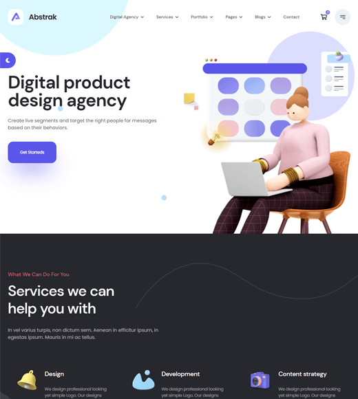 Abstrak es una agencia digital robusta con un moderno tema de WordPress. Está diseñado para ayudar a construir sitios web de agencias creativas para profesionales innovadores. Los ajustes son sencillos de configurar y puedes personalizar fácilmente el contenido del tema.