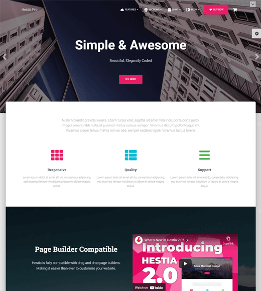 Hestia es otro elegante tema de una página adecuado para construir cualquier tipo de sitio web de agencia digital. Cuenta con más de 100K usuarios activos y es adecuado para negocios startup, portafolios, agencias online y plataformas de eCommerce.