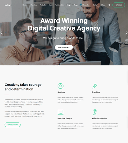 Intact es un tema multipropósito flexible diseñado exclusivamente para startups, agencias creativas, portafolios, estudios web, etc. Cuenta con 12+ demos integradas que puedes importar con su importador de demos de un solo clic.