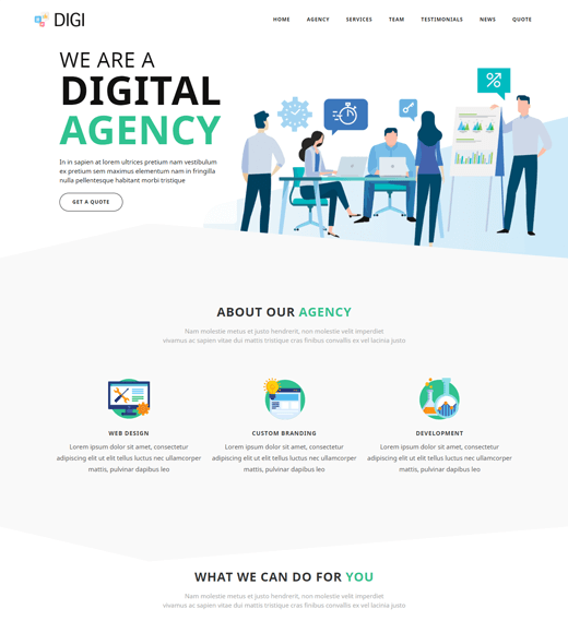 A continuación se muestra nuestra lista cuidadosamente curada de los mejores temas de WordPress para agencias digitales. Cada tema ha sido seleccionado con características esenciales en mente. Estamos seguros de que encontrará el mejor ajuste para su sitio web de la lista.