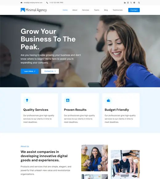 Spacious es un tema empresarial de WordPress sencillo y flexible, codificado y diseñado para ser súper rápido, responsive y multilingüe. Sus potentes características lo hacen perfecto para crear sitios de negocios pequeños y medianos.