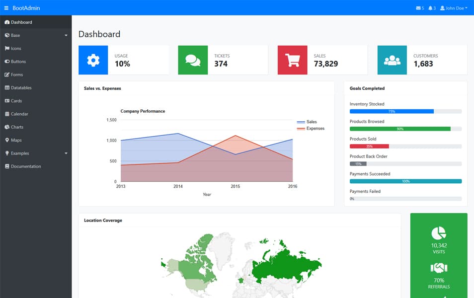 Si buscas un panel de administración básico de Bootstrap, entonces BootAdmin es para ti. Es una plantilla de backend con todas las características esenciales cubiertas.
