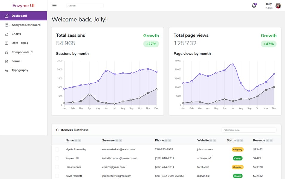 Purple Admin es una plantilla de administración gratuita atractiva, sencilla, colorida y moderna que puedes utilizar en tu proyecto. Es una plantilla de administración gratuita. Viene con muchas características, incluyendo un código claro comentado, fácilmente personalizable, etc.