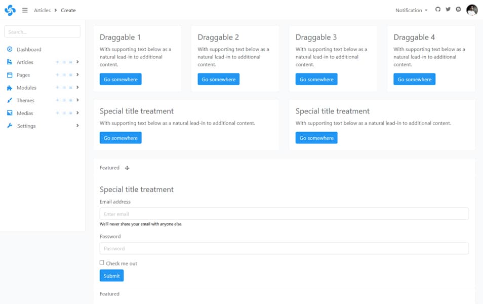 Swastika-IO-Admin es un panel de administración. También puede ser utilizado como un portal, y se basa en Bootstrap 4.