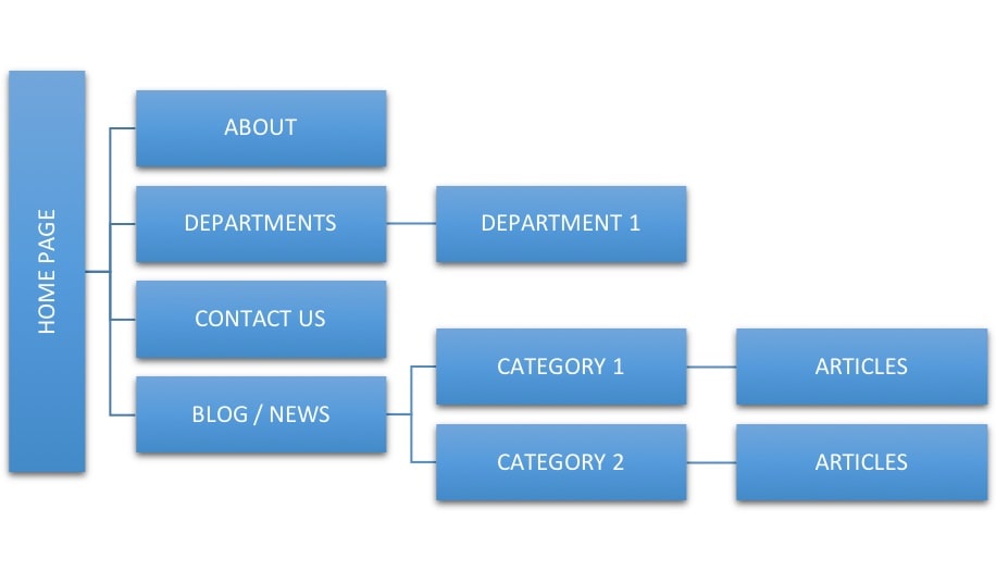 Una buena estructura del sitio no tiene más de 3 niveles de profundidad y permite acceder a cualquier enlace del sitio web desde la página de inicio en 3 clics o menos.