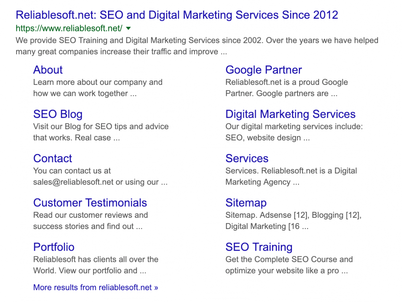 Sitelinks in Google Search Results