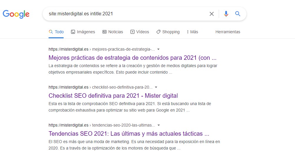 Para ver que se han producido los cambios voy a usar el propio Google para buscar contenido de 2021