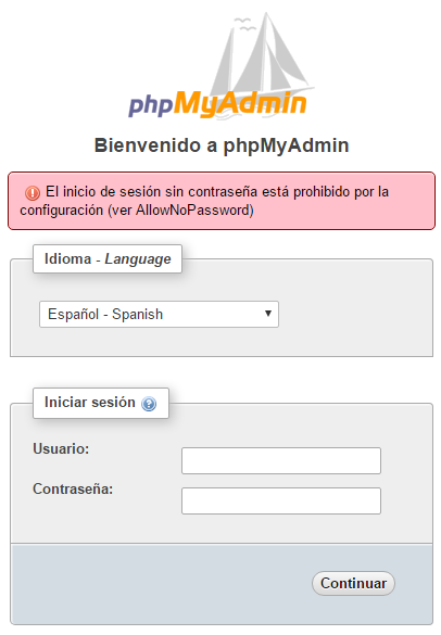 de esta forma podemos entrar a PHPMyAdmin sin problemas.