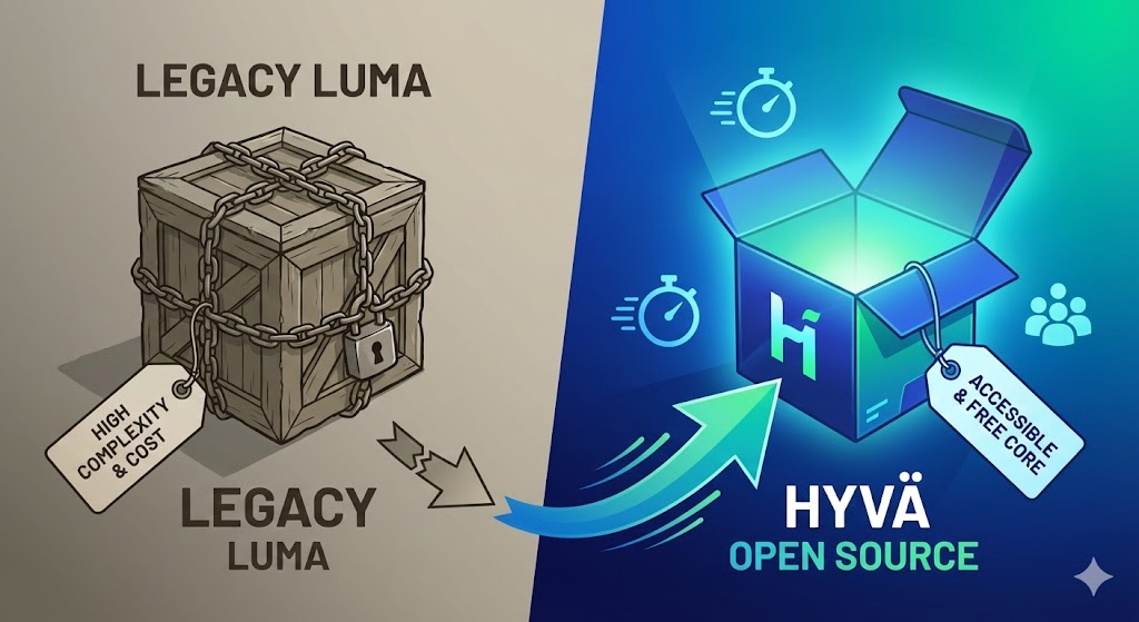 La pregunta ya no es “¿por qué pagar por Hyvä?” sino “¿por qué sufrir con Luma?”. Con el coste de licencia a cero, las agencias migrarán sus carteras enteras. Las extensiones de terceros, que ya eran cientos, verán su compatibilidad multiplicada. En 2026, Luma pasará de ser el tema por defecto a un legacy obsoleto.