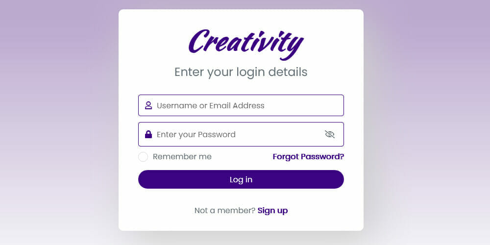 Formulario de inicio de sesión creativo