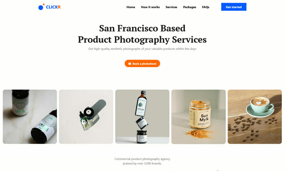 Clickr – Plantilla gratuita Bootstrap 5 HTML5 para sitios web de agencias de fotografía de productos