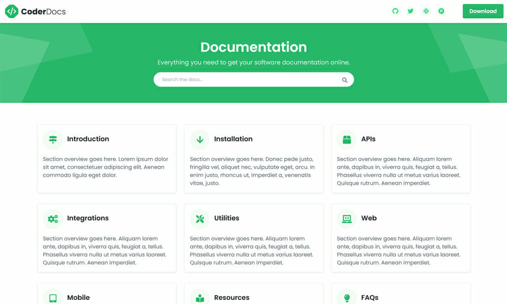 CoderDocs – Plantilla gratuita de documentación en Bootstrap 5