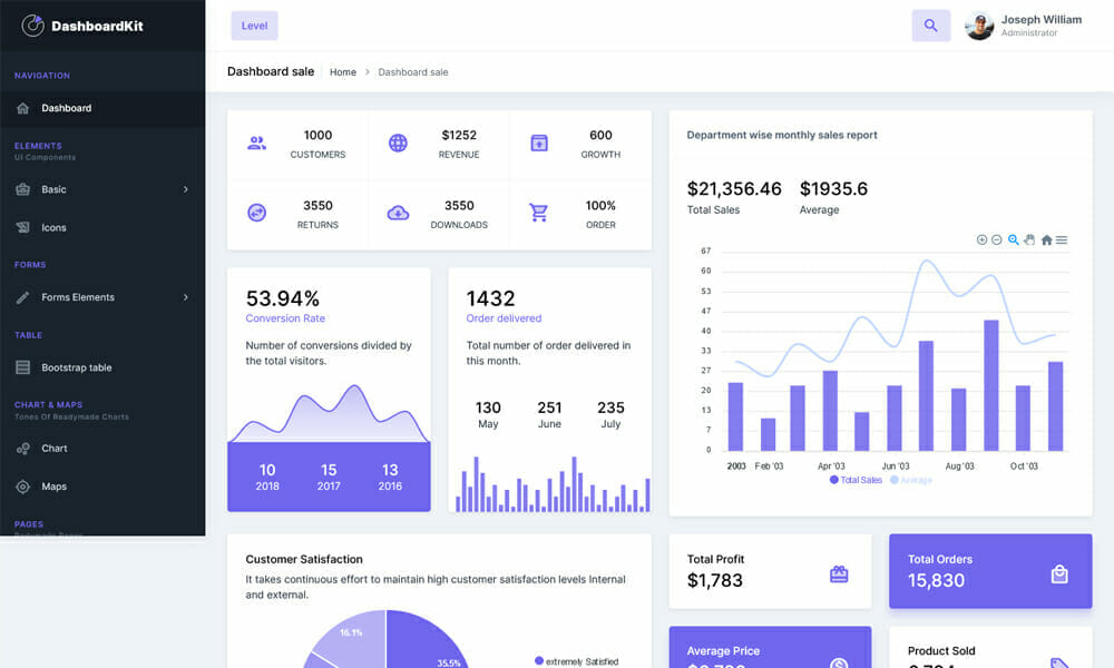 Voler es una plantilla de panel administrativo. Voler incluye un diseño intuitivo, junto con muchas características útiles que rara vez se ven en las plantillas administrativas tradicionales. Voler es modificable y adaptable, por lo que todo el mundo puede tener el tablero de instrumentos perfecto y único a su estilo. Cree un panel de control personalizable en cuestión de horas con Voler.