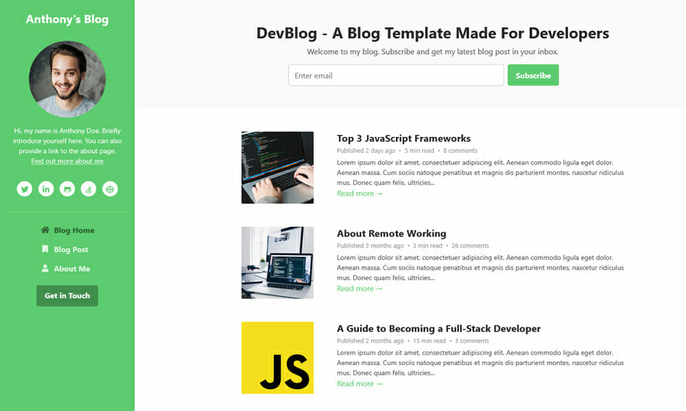 DevBlog – Plantilla de blog gratuita de Bootstrap 5