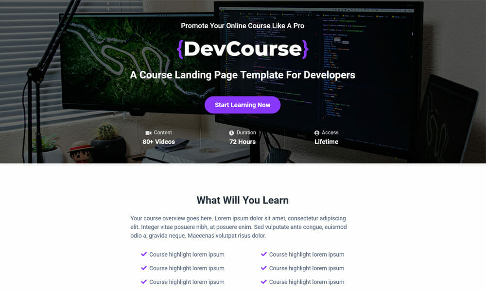DevCourse – Plantilla de Página de Aterrizaje de Curso de Bootstrap 5 gratis