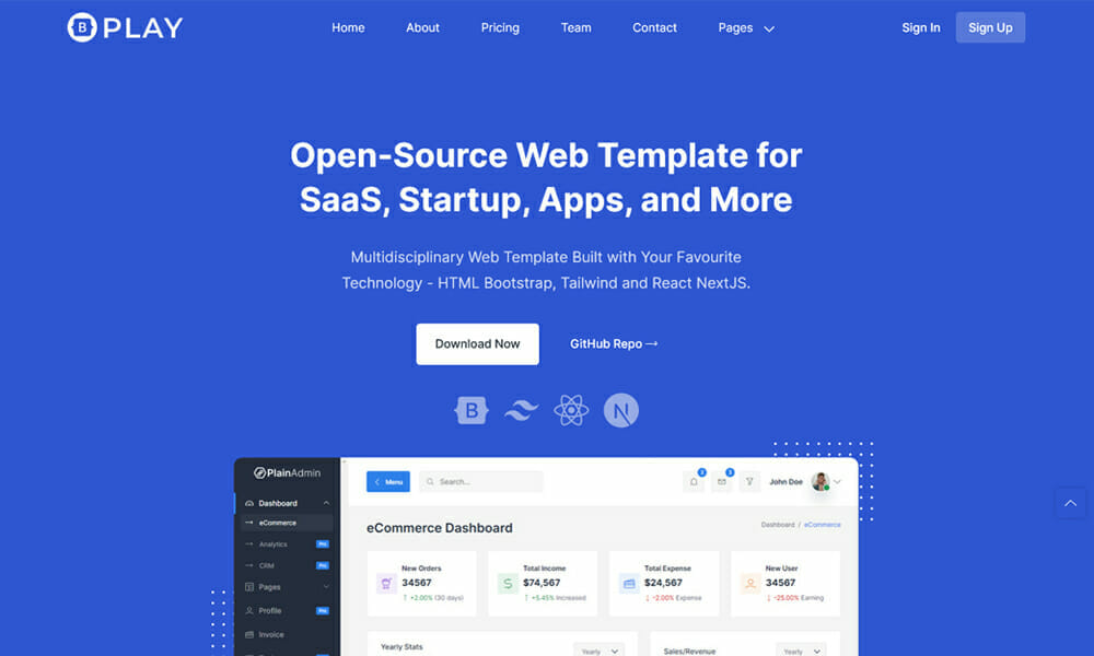 PlainAdmin – Plantilla de panel de control Bootstrap 5 gratuita