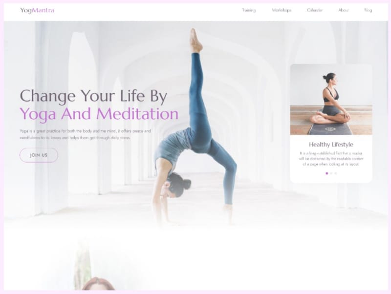 HealthMantra es una plantilla HTML gratuita de una página para profesores e instructores de yoga de TemplatesJungle. Es adecuada para cualquier estudio de yoga, profesor de yoga, club de yoga, o cualquier sitio web de información relacionada con el yoga.