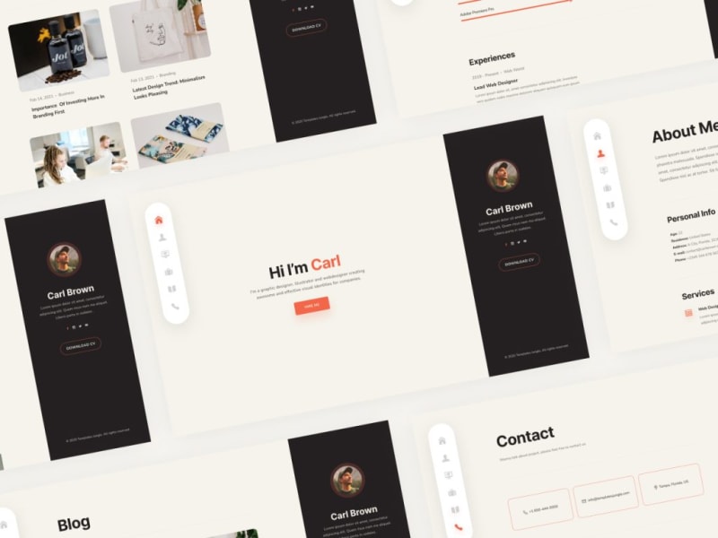 Carl es una plantilla gratuita Bootstrap 5 para sitios web de portafolio de TemplatesJungle. Esta plantilla HTML CSS está especialmente diseñada para un sitio web de portafolio creativo.