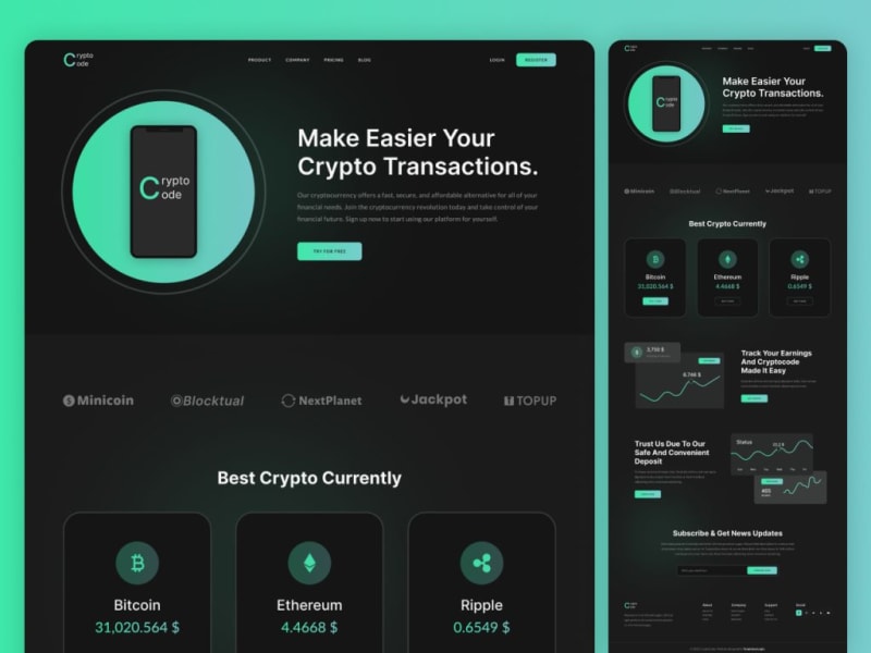 CryptoCode es una plantilla web gratuita de Cryptocurrency Bootstrap 5.