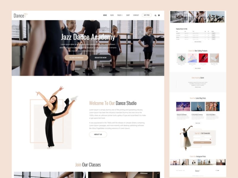Dance es una plantilla responsive gratuita de TemplatesJungle. Es una plantilla HTML5 de aspecto limpio para mostrar tu información. Está repleta de hermosos elementos de diseño para su sitio web que incluye una página de detalles del producto, página de blog, página de contacto, etc.