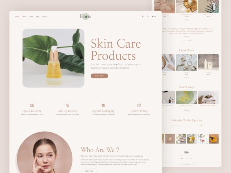 Descargue esta plantilla web HTML Bootstrap 5 para comercio electrónico de productos de cuidado de la piel. Esta plantilla HTML CSS es adecuada para cualquier producto de cuidado de la piel, productos de belleza o productos cosméticos. Su aspecto moderno y único hace que sea una hermosa plantilla de sitio web para el cuidado de la piel o sitios web de tiendas de belleza.
