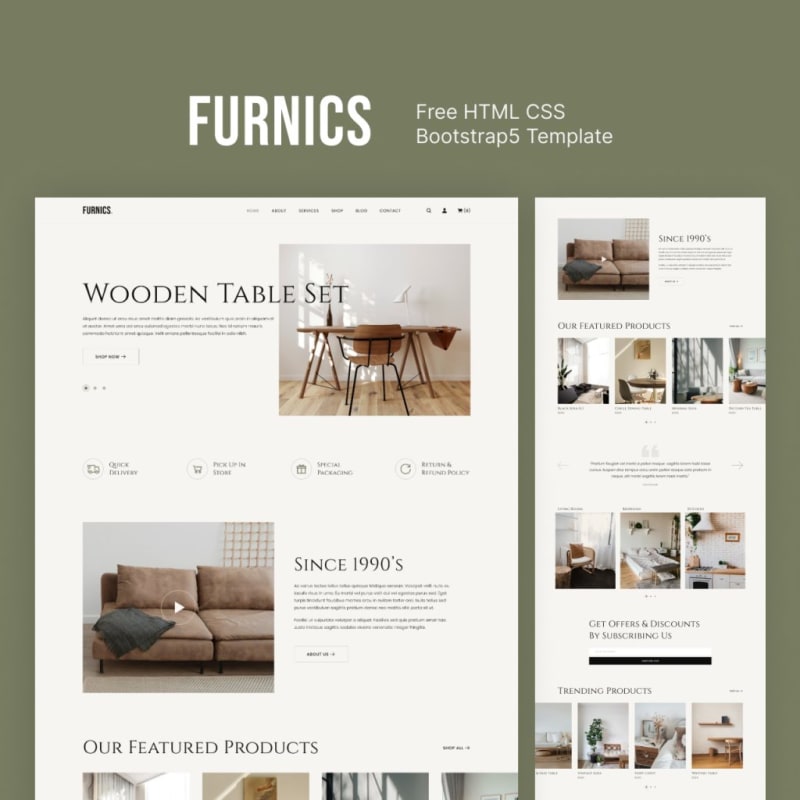 Descargue gratis esta plantilla Bootstrap 5 para tienda online de muebles. Esta plantilla web gratuita es adecuada para cualquier tienda de muebles, tienda de decoración de interiores, etc. Su aspecto minimalista y limpio la convierte en una bonita plantilla web adecuada para librerías online.