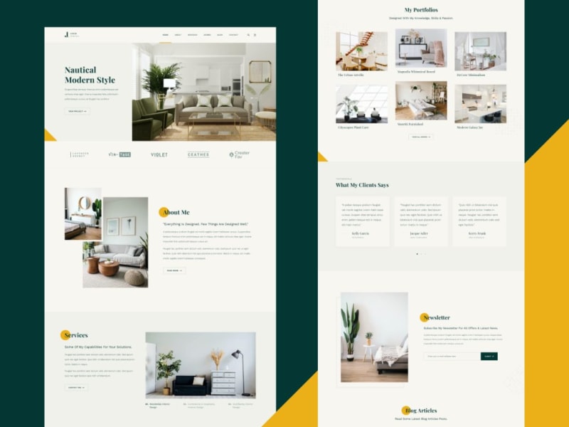 Jesse es una plantilla de portafolio bellamente diseñada para diseñadores de interiores. Puedes descargarla gratis para uso personal y comercial. Esta impresionante plantilla HTML CSS gratuita ha sido creada por TemplatesJungle.