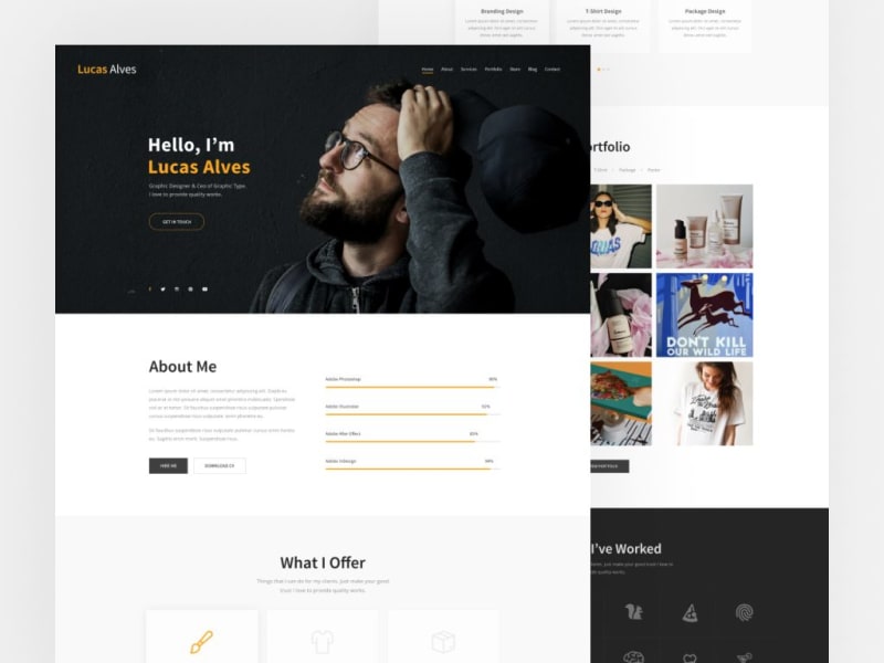 Lucas es una Plantilla Onepage Portfolio HTML CSS gratuita de TemplatesJungle. Se adapta mejor a cualquier diseñador, artista, programador, fotógrafo, artista o autónomo que quiera crear un sitio web personal. Usted es libre de utilizar esta plantilla HTML en su proyecto personal o comercial, siempre y cuando no quite nuestro enlace de crédito en el pie de página.