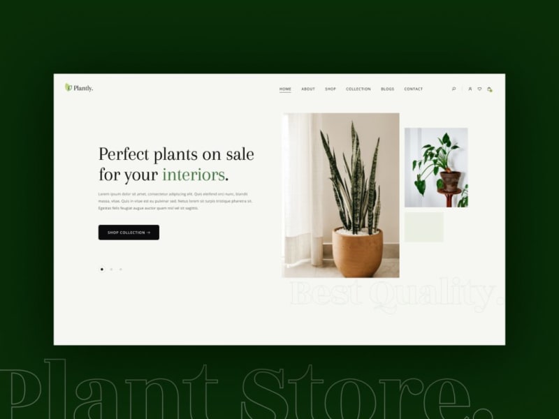 Plantly es una plantilla web gratuita para venta de plantas de TemplatesJungle. Es adecuada para cualquier tienda de comercio electrónico, sitio web de compras en línea, tienda de plantas, vivero, floristería, mini tienda, etc.