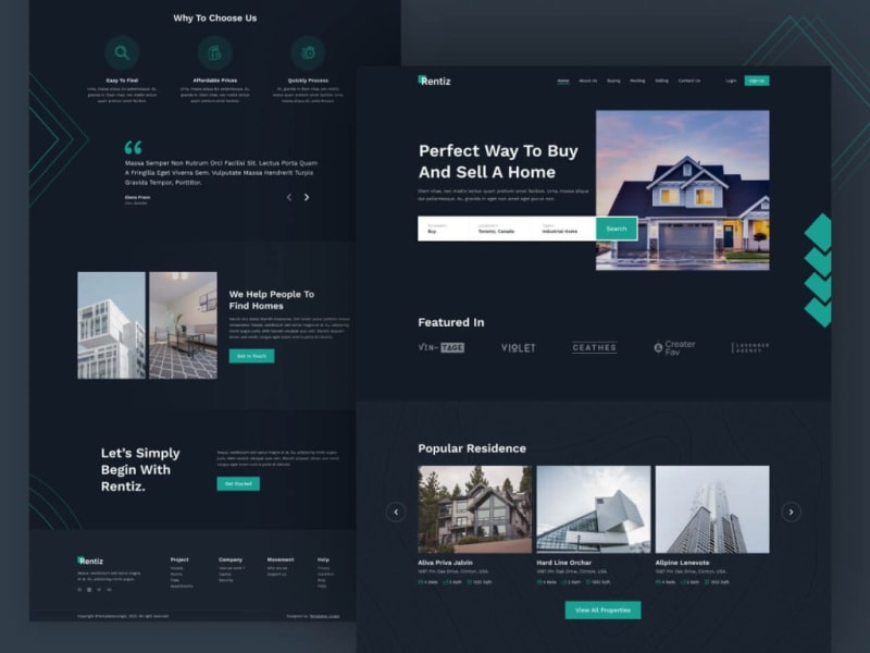 Rentiz es una plantilla Bootstrap 5 gratuita de TemplatesJungle. Esta plantilla es una plantilla Figma gratuita moderna, única, oscura y bellamente diseñada. This template suits residence, property management, real estate, agency, etc.