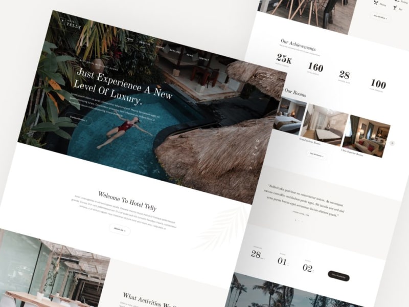 Telly es una plantilla gratuita y minimalista para sitios web de hoteles, moteles, complejos turísticos, posadas de vacaciones, pan y desayuno, complejos turísticos de playa, sitios web de reservas de hoteles, páginas de aterrizaje de hoteles, sitios web de reservas de hoteles o cualquier negocio de alojamiento. Esta increíble plantilla gratuita ha sido diseñada por TemplatesJungle