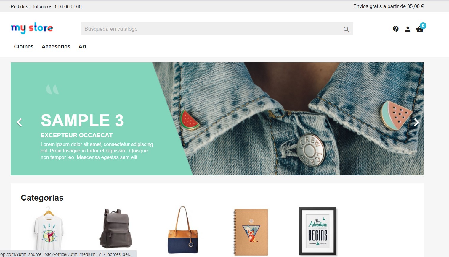 Para terminar te dejo una captura para que veis como luce el tema recién instalado, como ya ves es muy parecida a la Classic de Prestashop pero supervitaminada.