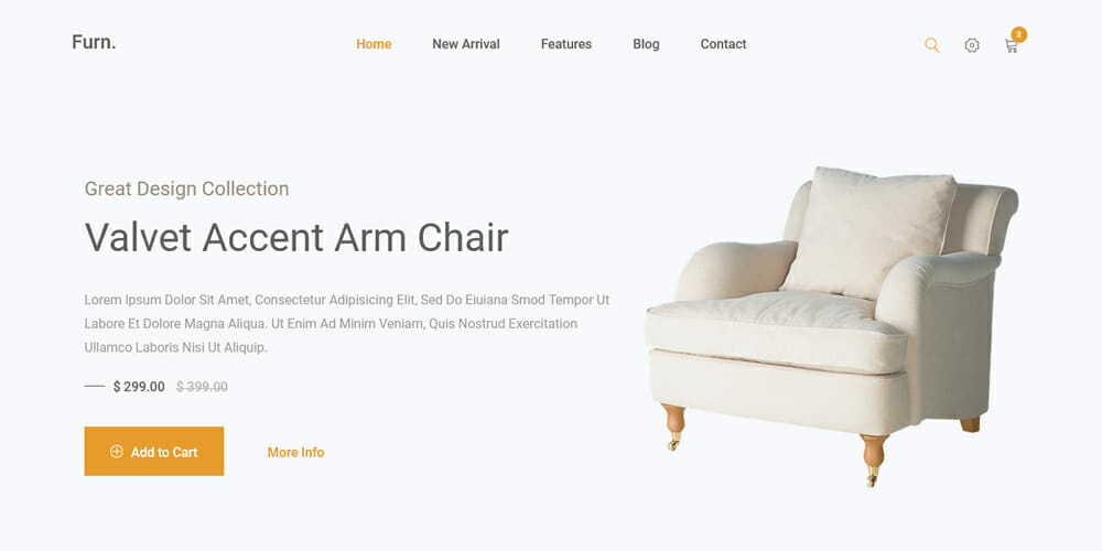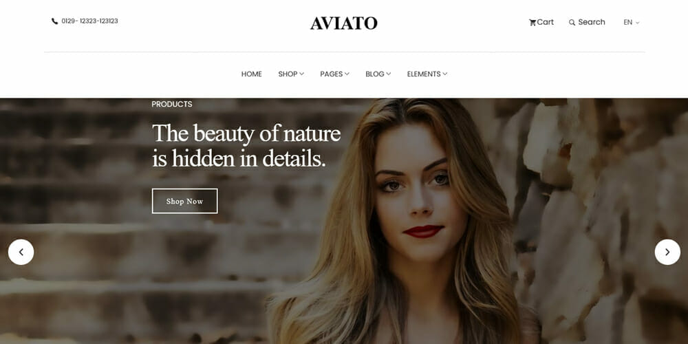 de sitio web para promocionar productos. Tiene una interfaz de usuario clara e intuitiva con un diseño sofisticado y elegante. El tema ofrece la mejor experiencia de navegación con el diseño centrado en el producto.