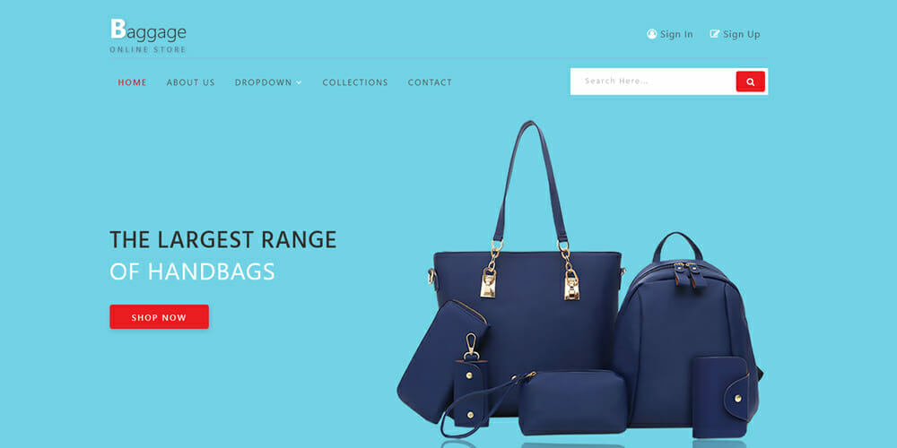 Como tienda online de bolsos de alta gama, ¿se ha preguntado qué podría utilizar su sitio web para llevar su negocio al siguiente nivel? Has llegado al lugar adecuado. Baggage es una plantilla de comercio electrónico gratuita que está lista para que la personalices y la pongas en marcha en cuestión de minutos. Con un diseño centrado en mostrar sus bolsos, es perfecta para cualquier tipo de negocio en la industria de los bolsos de lujo