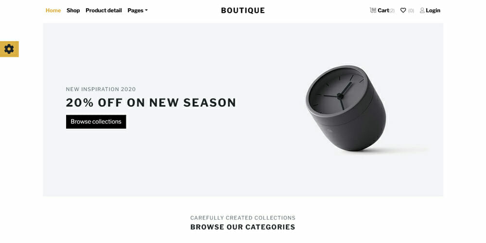 Un diseño limpio y elegante y una interfaz intuitiva. Con esta plantilla de eCommerce gratuita, puedes lanzar rápidamente una tienda online que se verá muy bien en cualquier dispositivo y es fácil de usar. Es