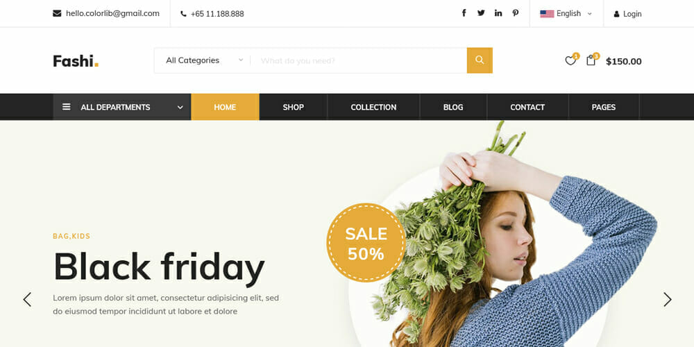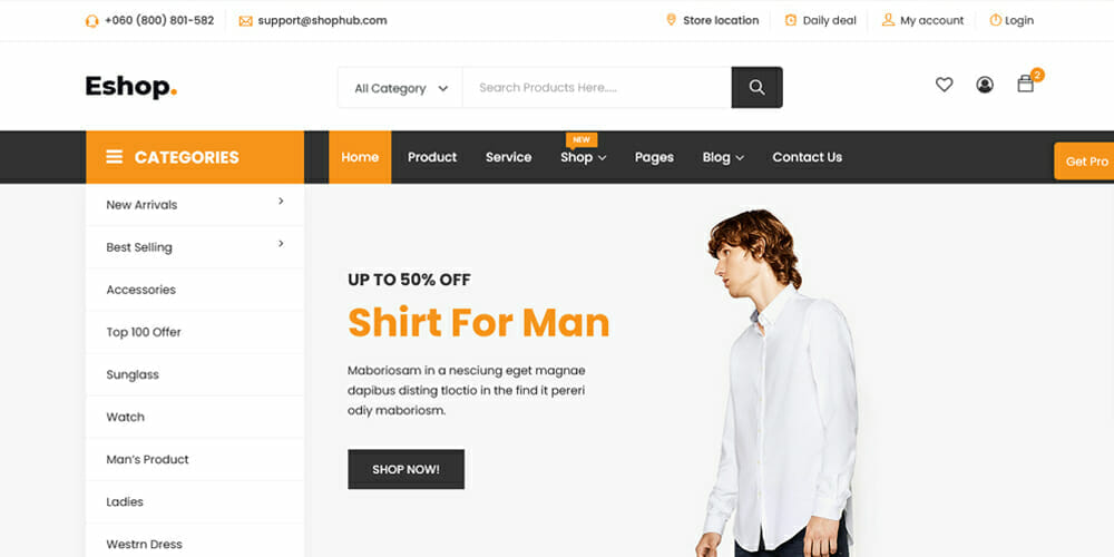 Eshop es una plantilla HTML5 de comercio electrónico que es súper rápida y receptiva. Tiene una increíble experiencia UI y UX y viene con diseños de página de inicio pre-hechos y skins basados en el diseño. Esta plantilla es perfecta para crear una tienda de nicho.