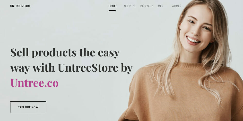La plantilla UntreeStore está basada en Bootstrap 4, que es un marco de trabajo frontal elegante e intuitivo. Está disponible en dos versiones diferentes y tiene las páginas más necesarias, como la página de inicio, Acerca de nosotros, Contacto y más. Uno de sus principales puntos fuertes es que puedes utilizarla como plantilla WooCommerce, por lo que podrás vender tus productos online en poco tiempo. Si quieres hacerlo, sólo tienes que instalar