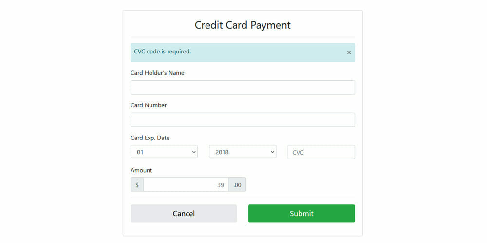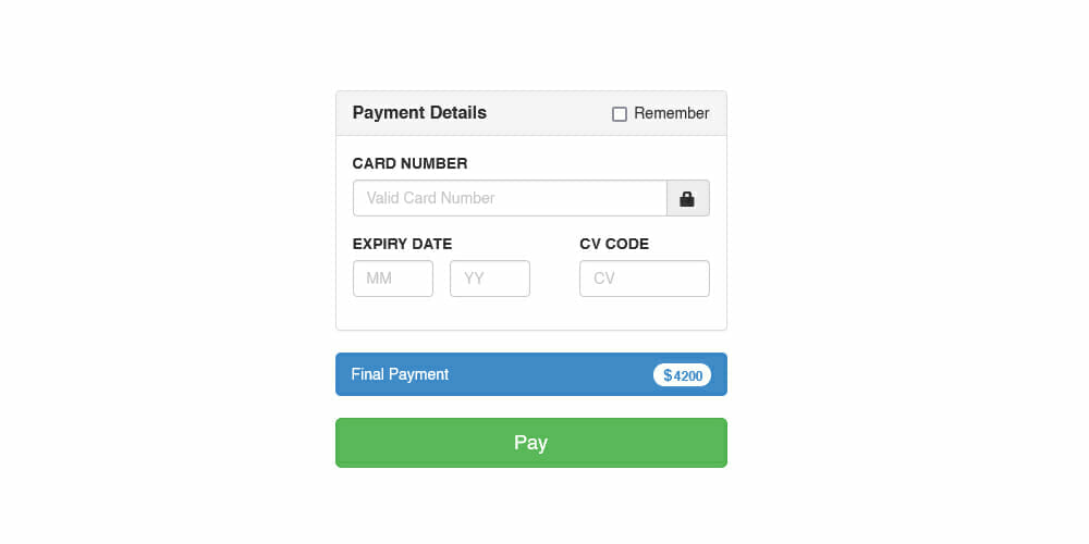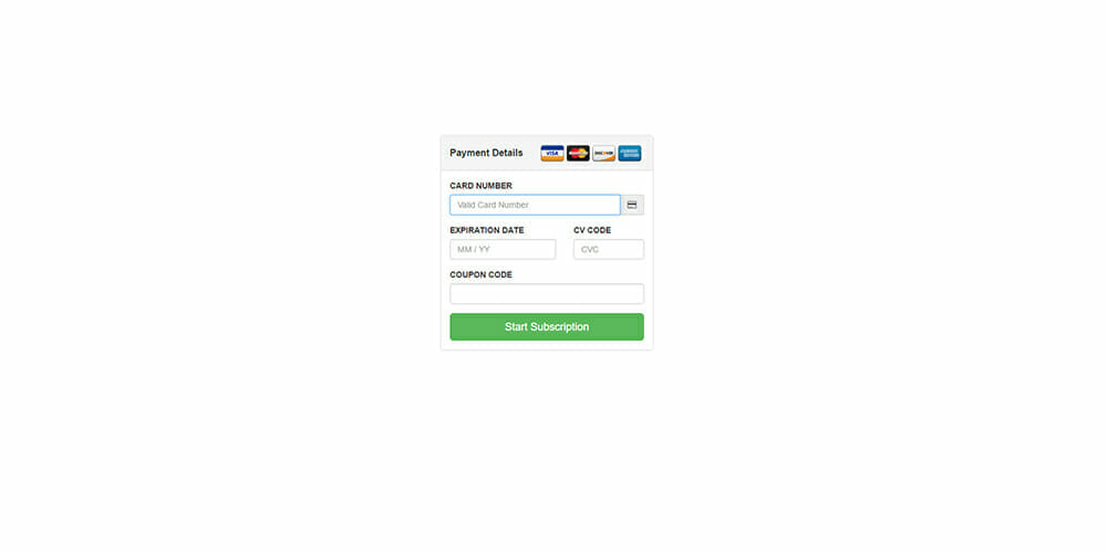 Formulario de pago con tarjeta de crédito de Bootstrap
