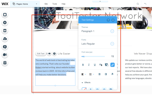 Wix: Wix se destaca por su facilidad de uso y su enfoque simplificado en la creación de sitios web. No necesitas conocimientos técnicos para utilizar Wix, ya que su editor visual arrastrar y soltar hace todo el trabajo por ti.