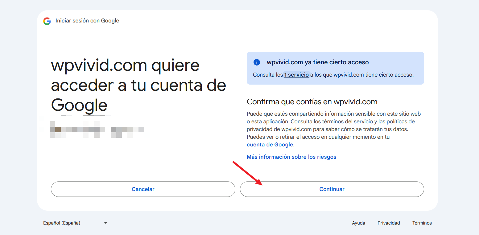 No confirmamos para que wpvivid.com conecte con nuestro Google Drive